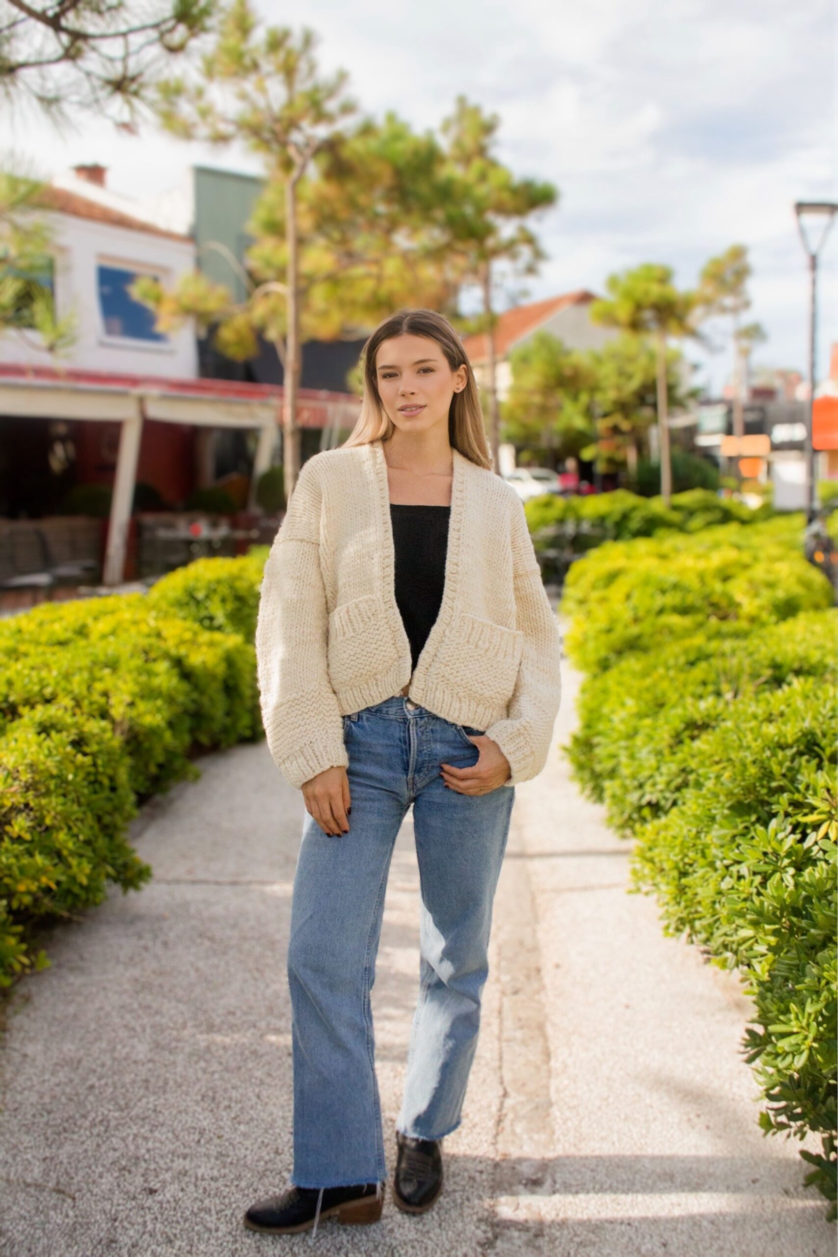 Saco tejido a mano en lana merino, de textura suave y abrigo real. Diseño liso con bolsillos delantero y calce relajado. Una prenda atemporal, hecha para durar y acompañar cada invierno.