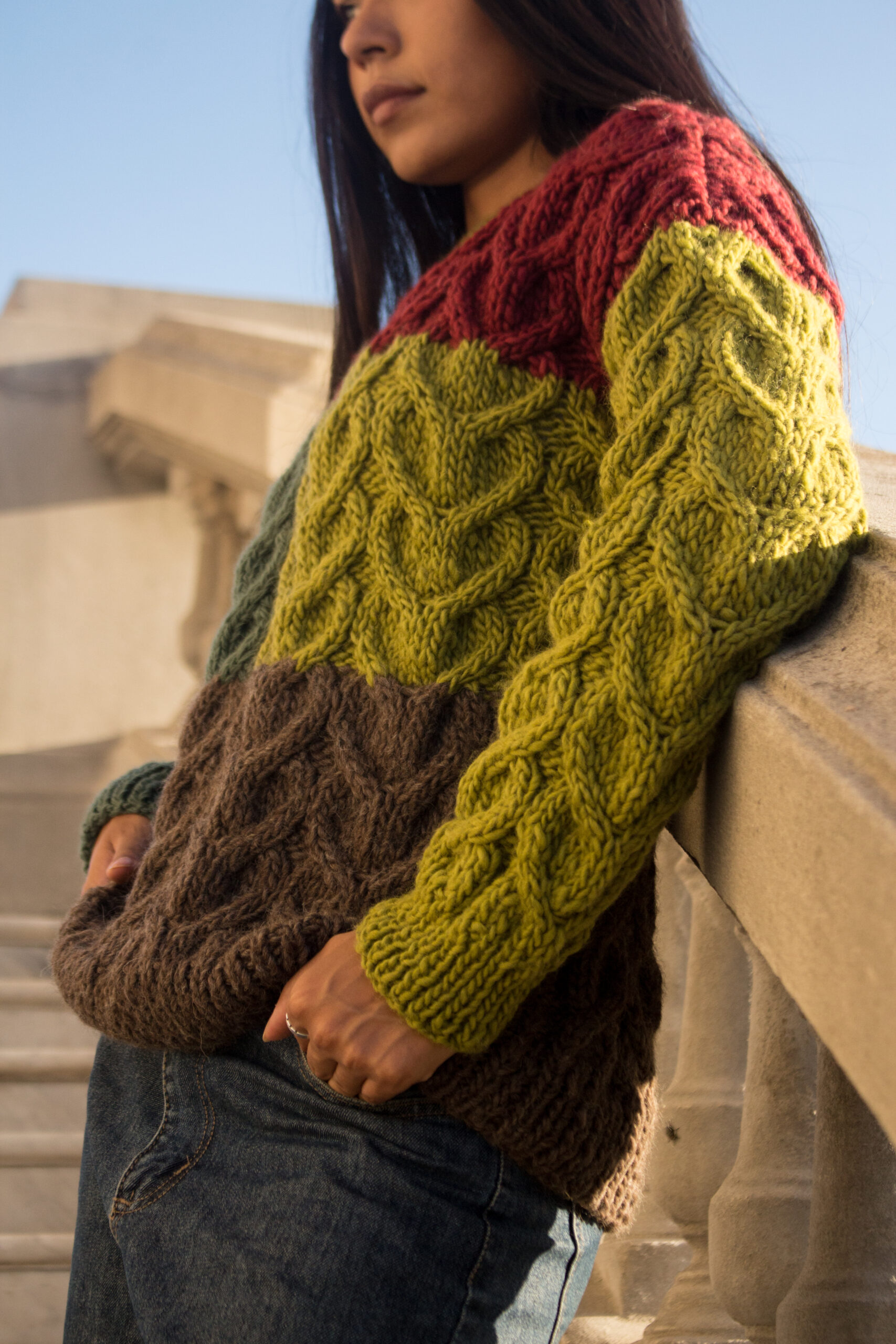 Buzo tejido a mano con caracter. Abrigado y comodo, con detalles artesanales que levantan cualquier look. Ideal para usar todos los días: con jean, sobre una camisa o para estar en casa bien calentito sin perder el estilo. Su talle único abarca de un S a un L.