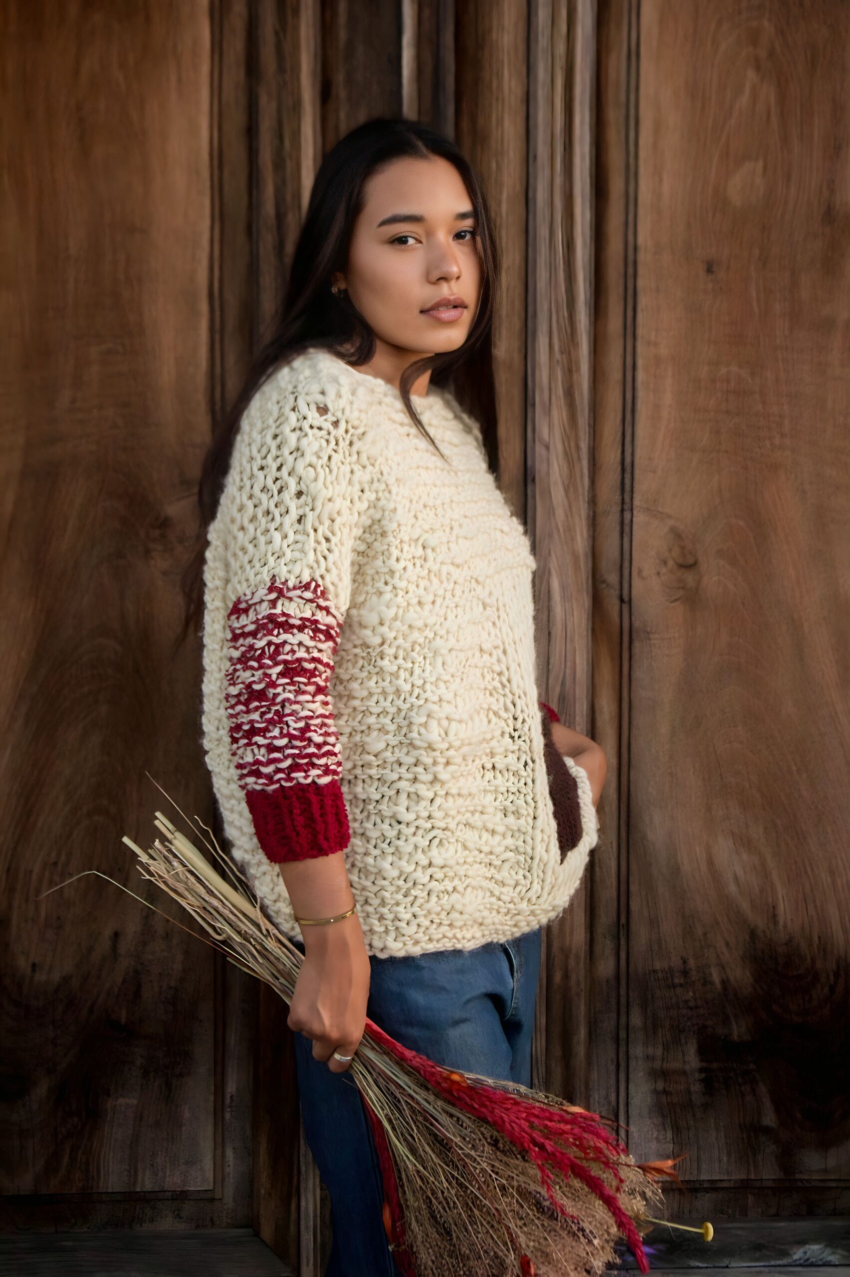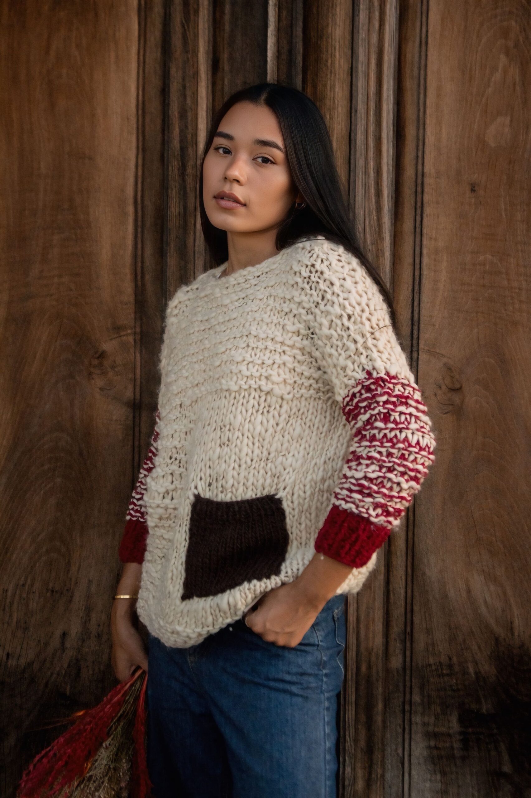 Buzo tejido a mano en Santa Clara, con el diferencial de sus mangas tres cuartos y práctico bolsillo frontal. Cómodo, canchero y súper abrigado: el equilibrio perfecto entre estilo y calidez. Bien María René.