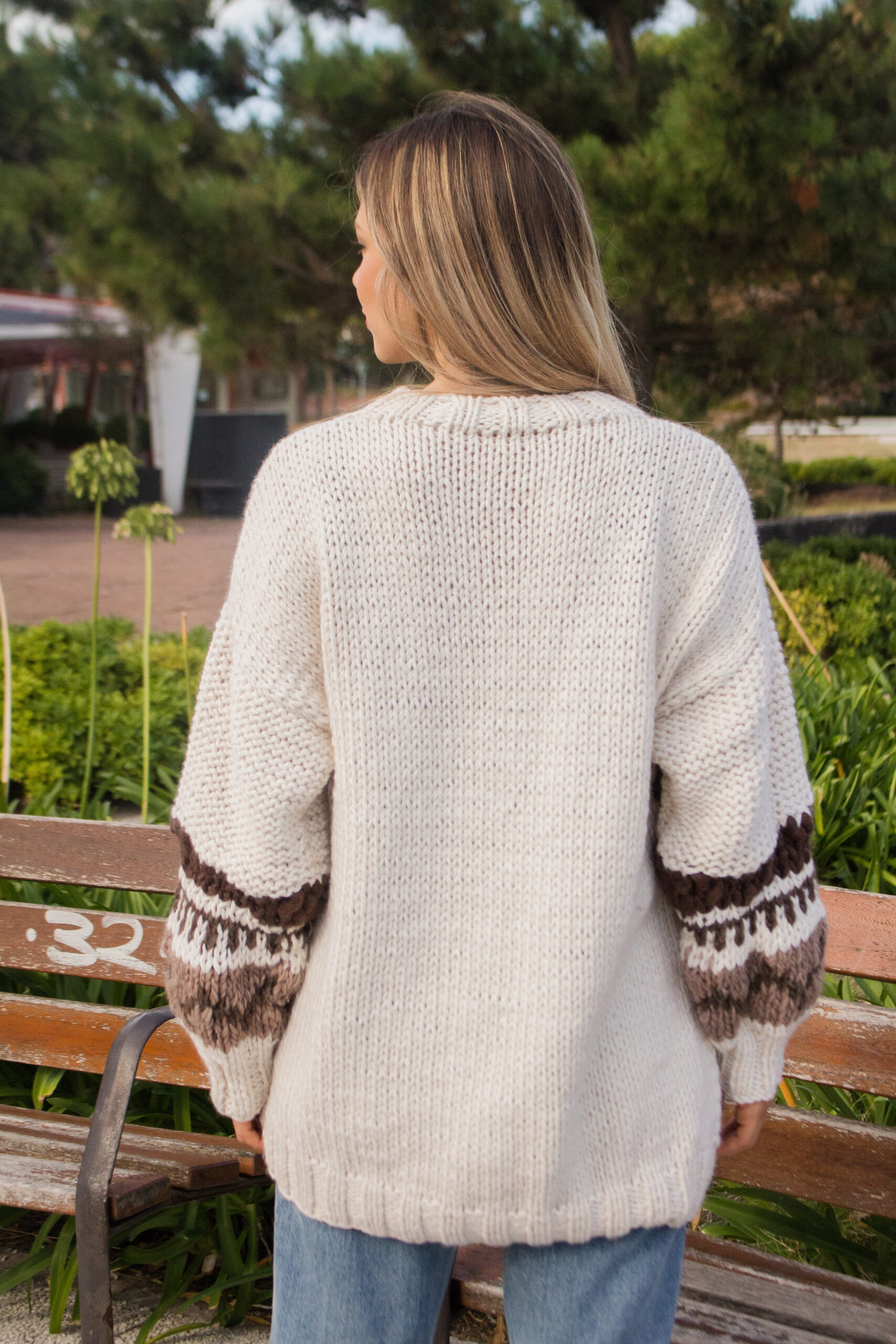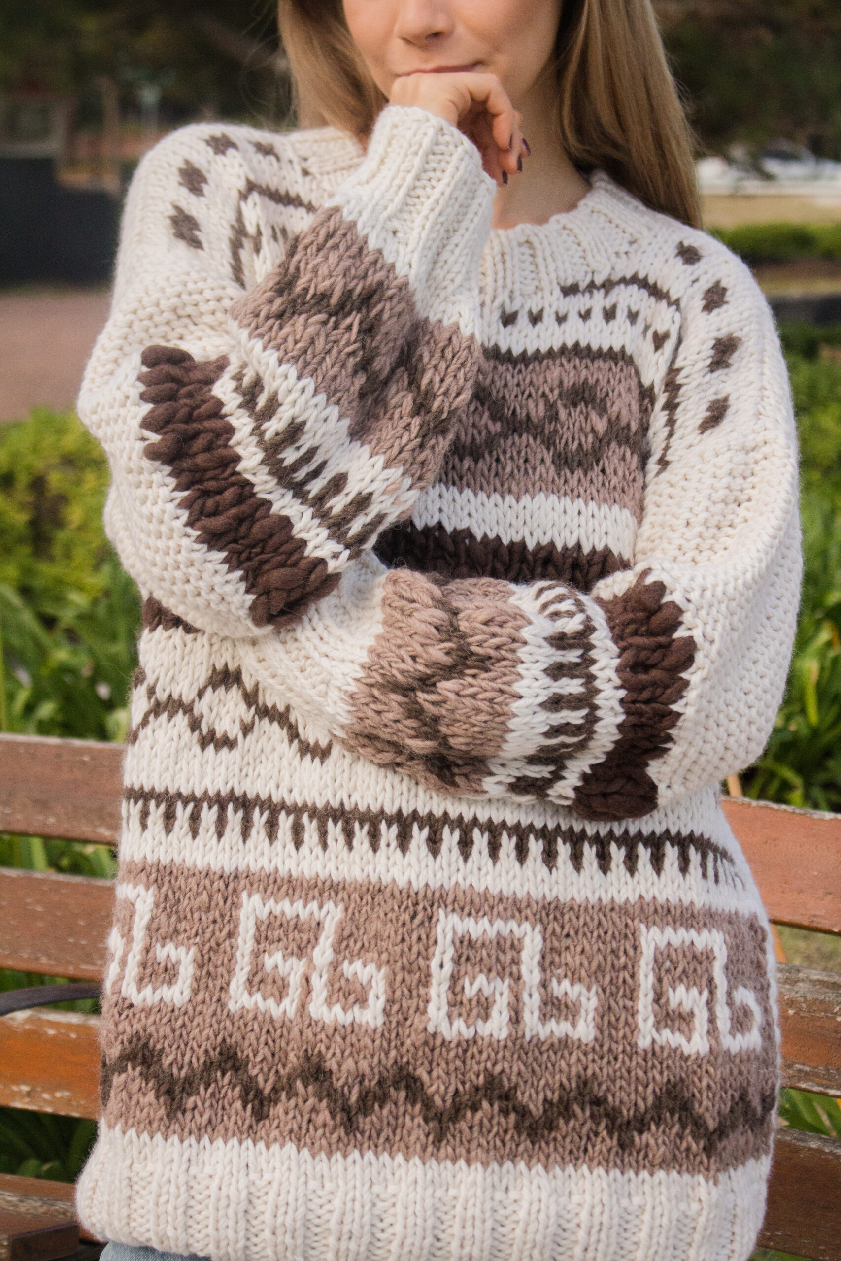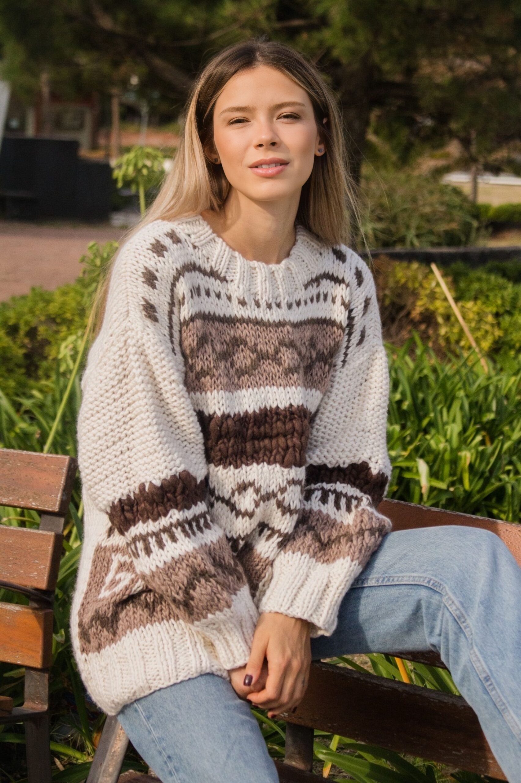 El buzo Nepal fue tejido a mano en Uruguay por artesanas de todo el país. En el mismo predominan los tonos naturales, también teñidos a mano. Fue realizado principalmente en punto jersey, jacquard y relieve en lana flame. Todo lo que vendira a ser una obra de arte en presentacion de un buzo.