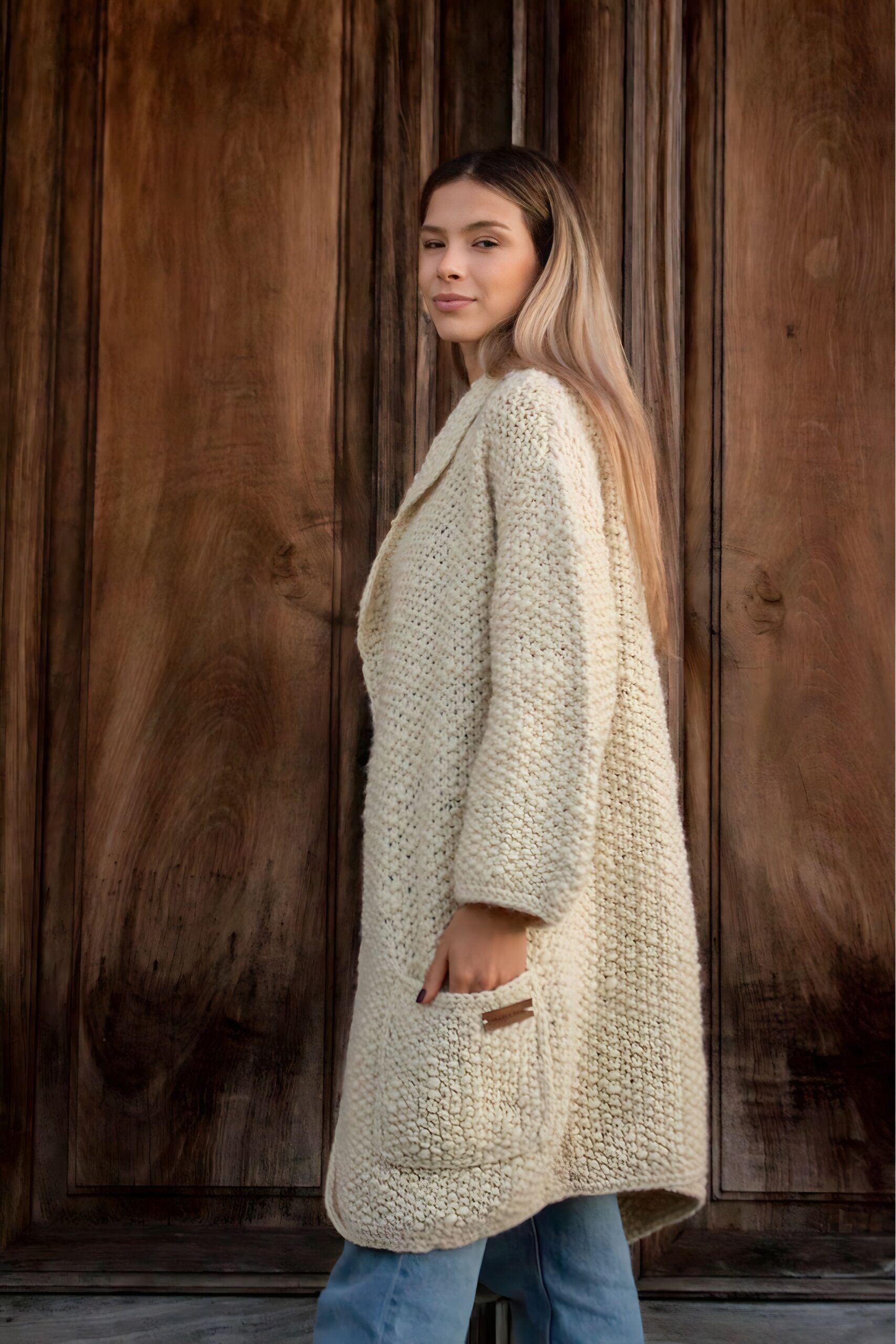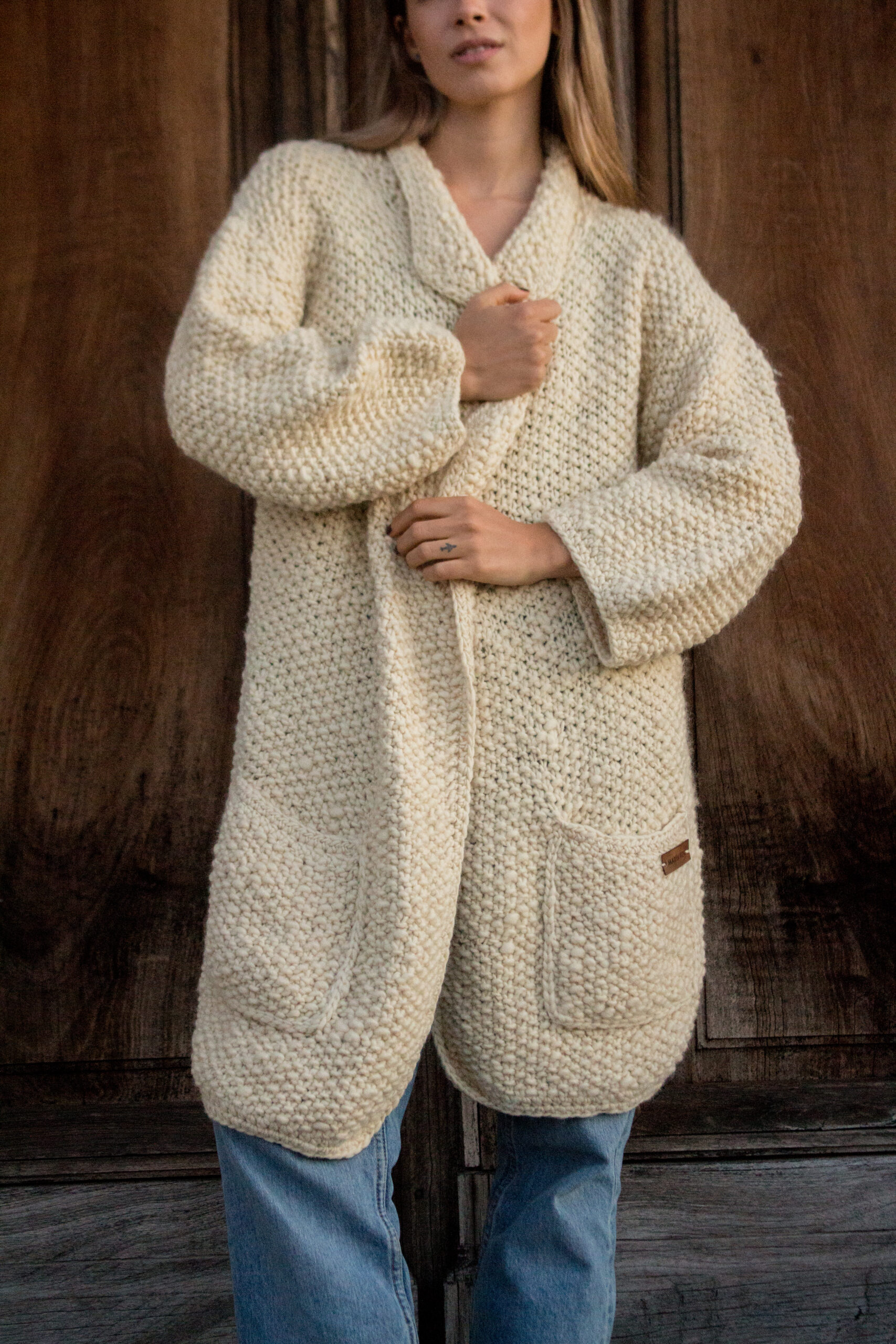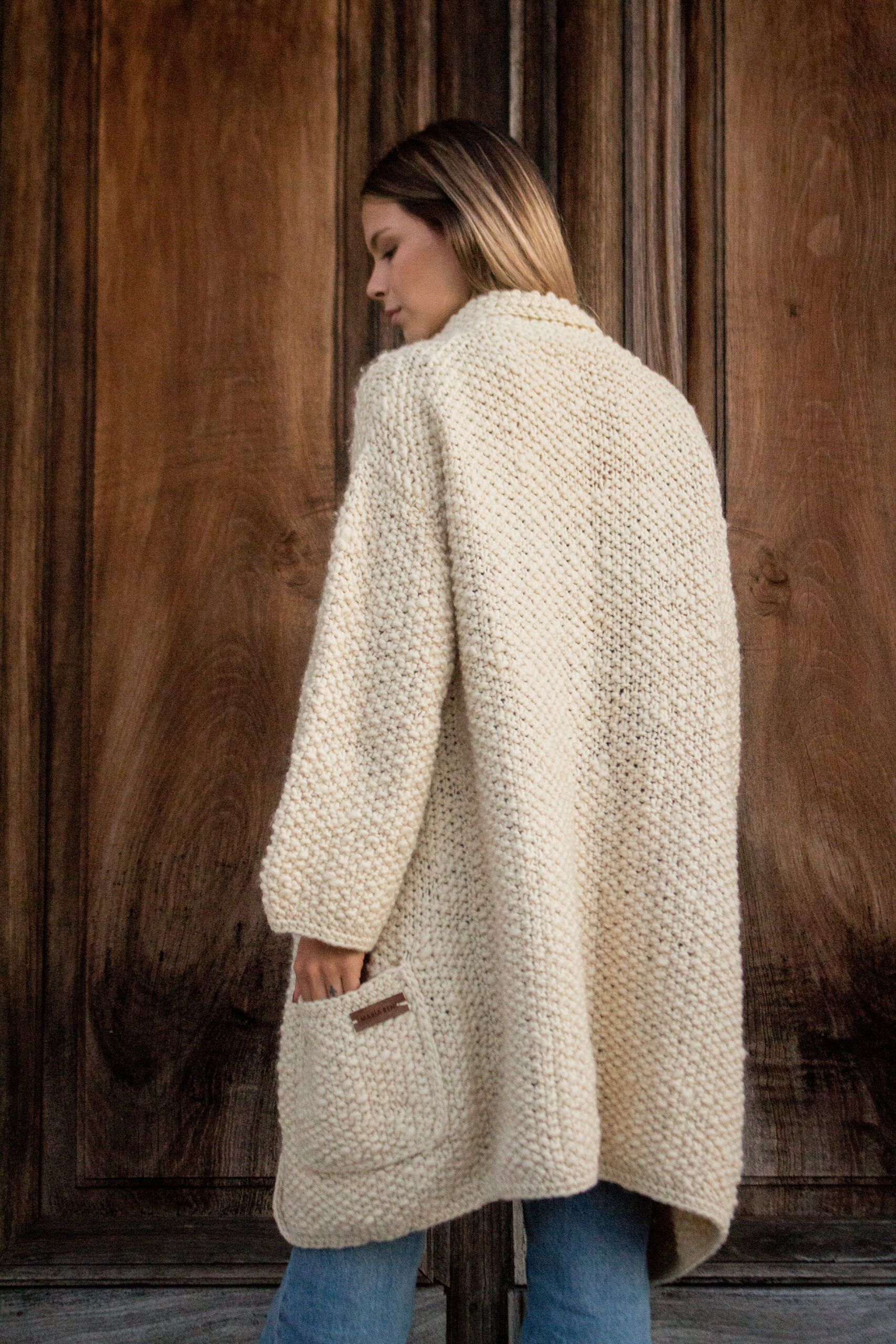 Saco tejido a mano en lana merino. Suave, abrigado y atemporal. Talle único.