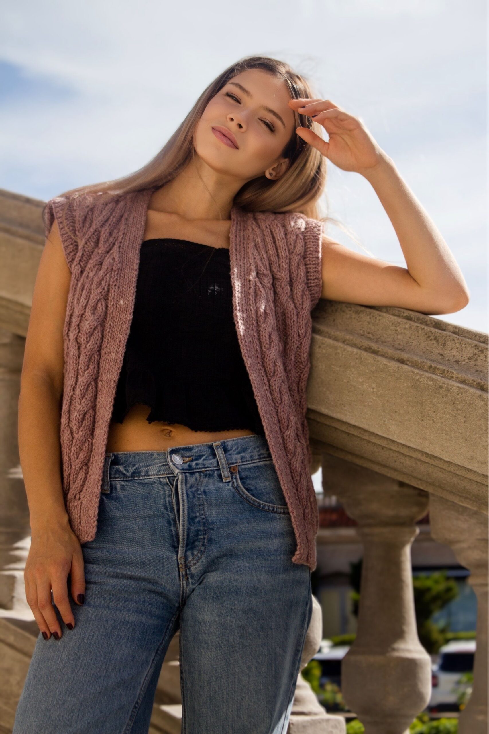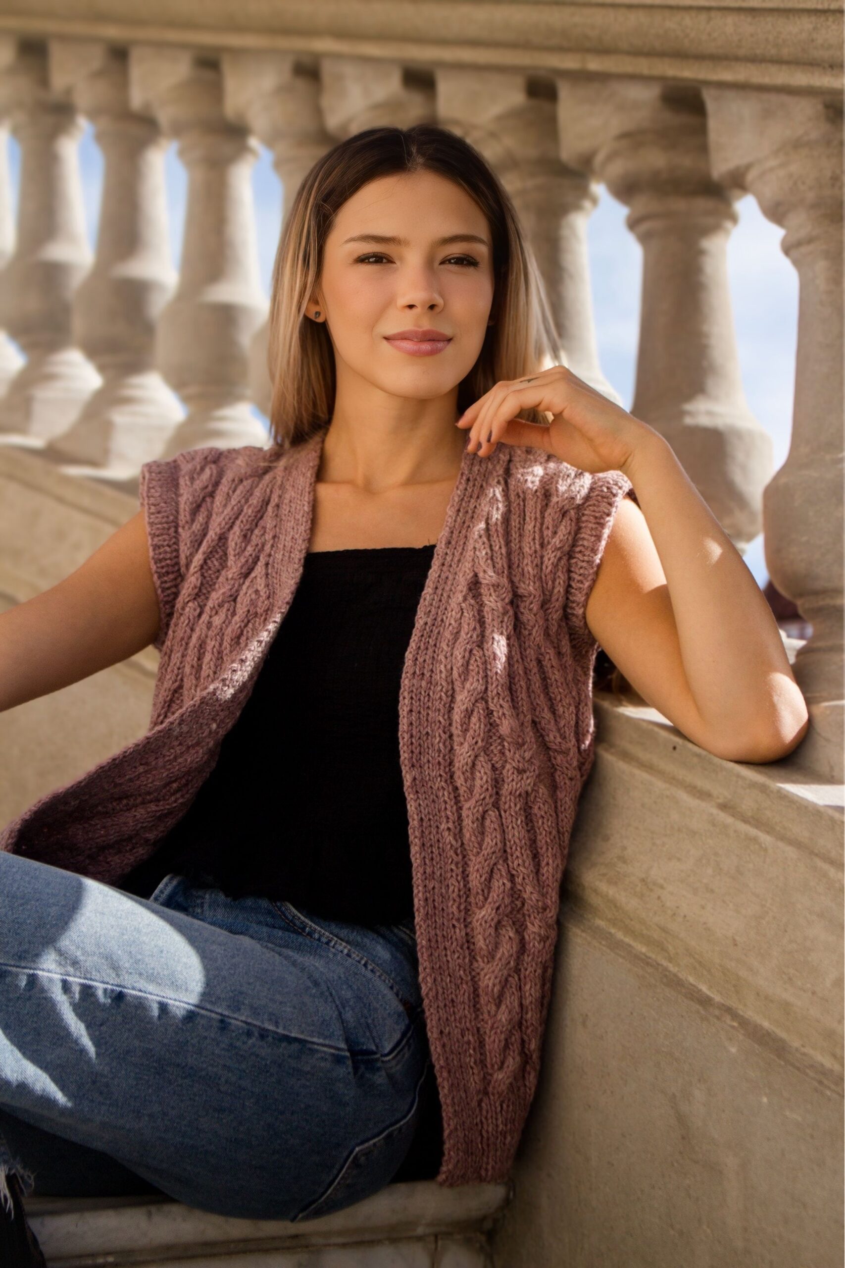 A punto, abierto y con actitud, ideal para completar cualquier look. Chaleco tejido a mano en Florida, Uruguay. Talle único.